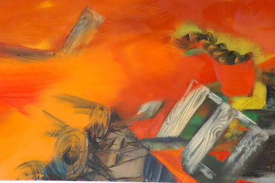 The photos of this painting technically are terrible, but happen to work. Nearly all of the bright sheen is actually glare, not the color of the paint. Most of those areas are a filthy black color in reality, though with shiny additive mixed in the paint. Firsthand it seems mostly black with a bit of brightness, luckily, the overall sheen works just as well.